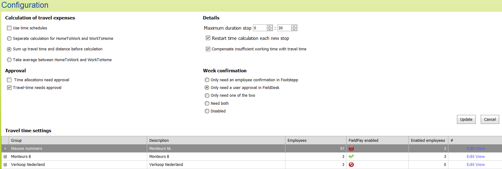 Setting this option can be found in the 'FieldPay' module under the menu 'Travel time settings’.