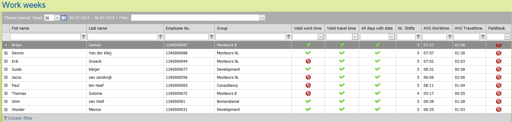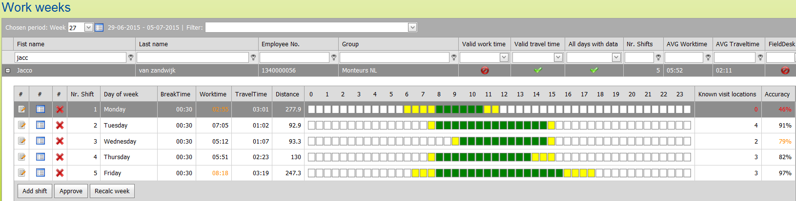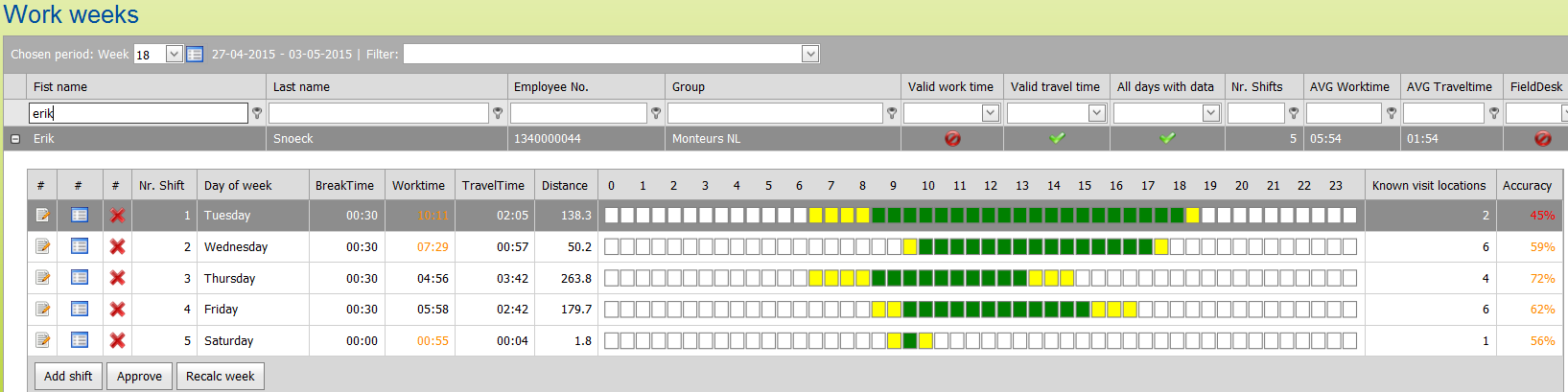 When you open the screen you will see a weekly overview per employee.