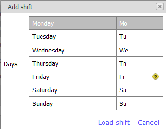 - Authorisation for the ‘edit shifts’ or the ‘edit hour registration’ screen in FieldPay module’s menu.