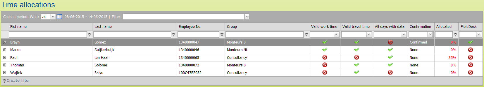 Week Confirmation | Has the week been confirmed by the employee (refer to paragraph ‘approving’) |